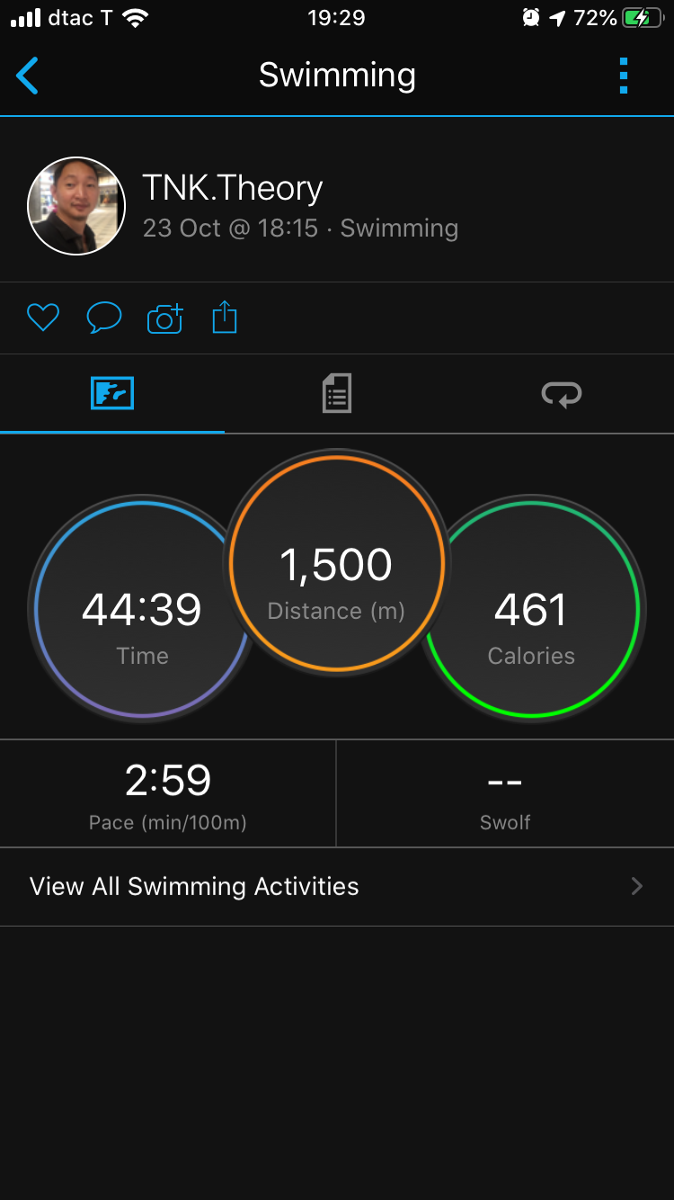 สรุป เป็นการว่าย non-stop ได้ไกลที่สุดในชีวิต 3900 ม. = 1 ชม. 40 นาที