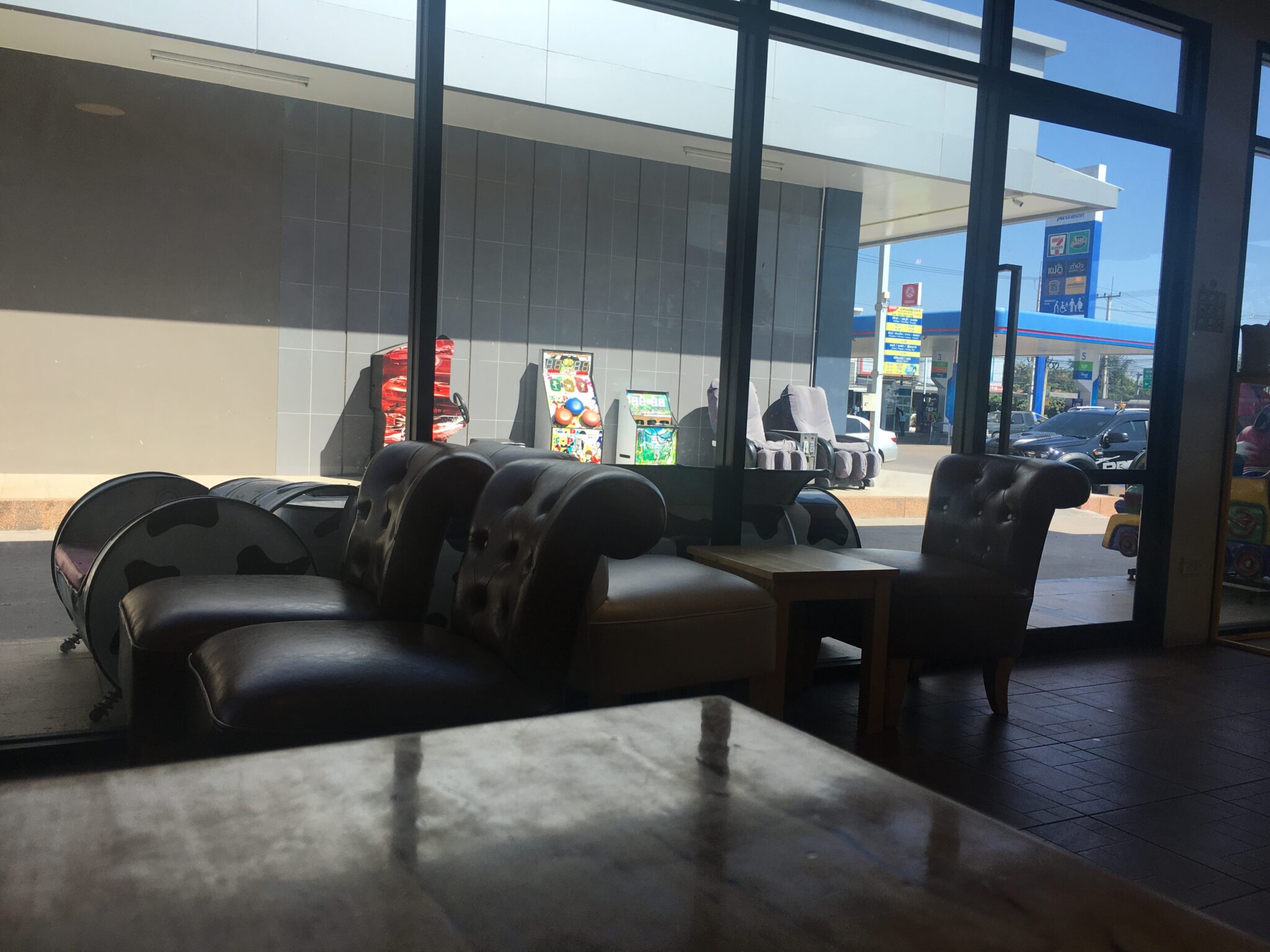 เช้าวันเสาร์ ออกจากบ้าน 10 โมงเช้า แวะแทบทุกปั๊มเลย ( ปวดจี่ ) ภาพนี้อยู่ในร้านคอฟฟี่ปัง บรรยากาศดี แต่น้ำและขนม…..(จุดๆๆ)…….