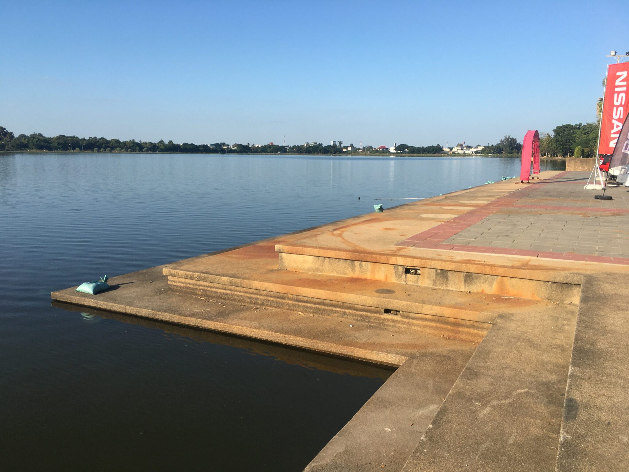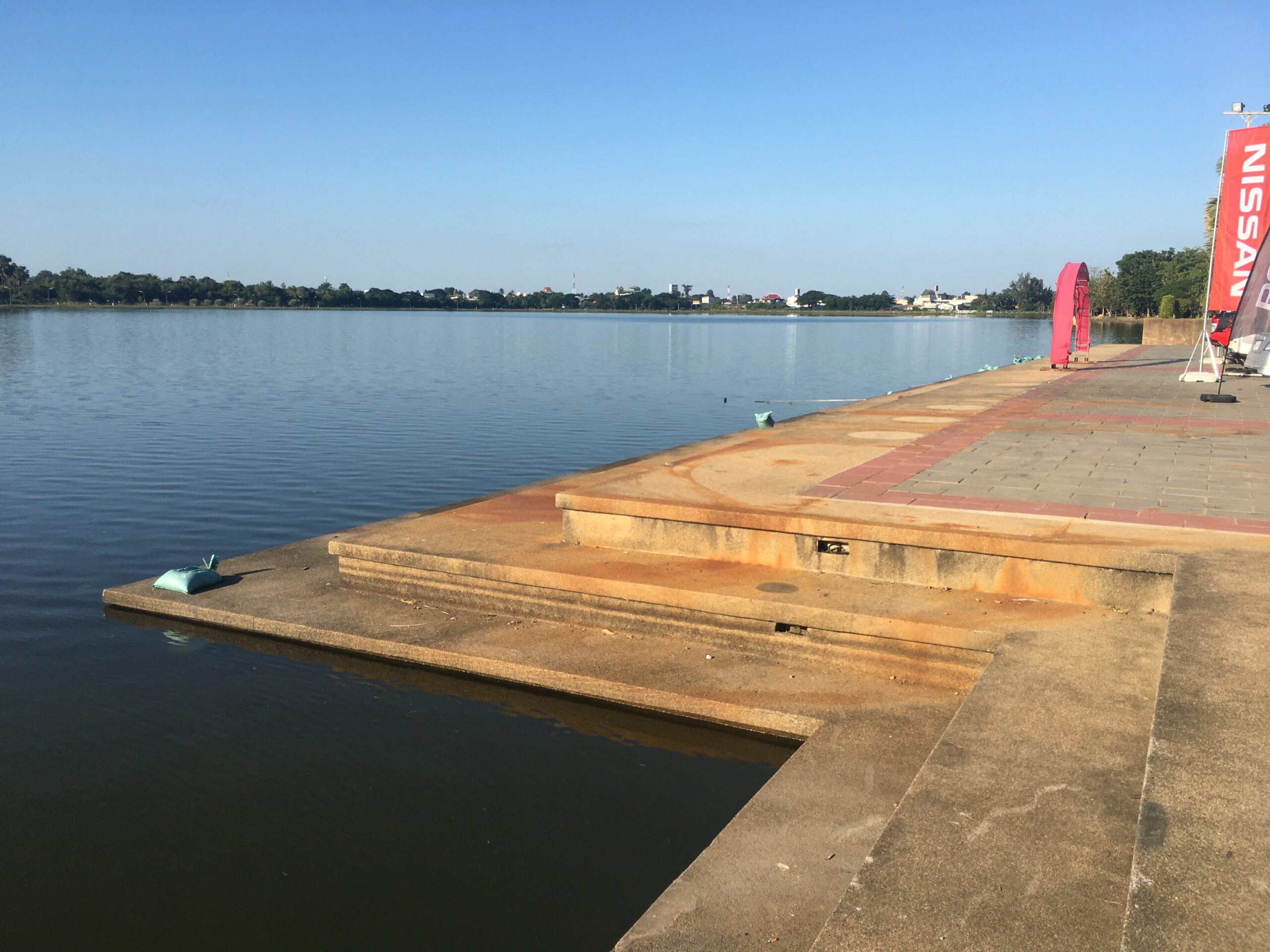 แล้ว lane วิ่งและปั่นเนี่ย ก็ล้อมรอบสระน้ำขนาดใหญ่ แล้วตรงกลางสระก็เป็นเกาะกลางน้ำ