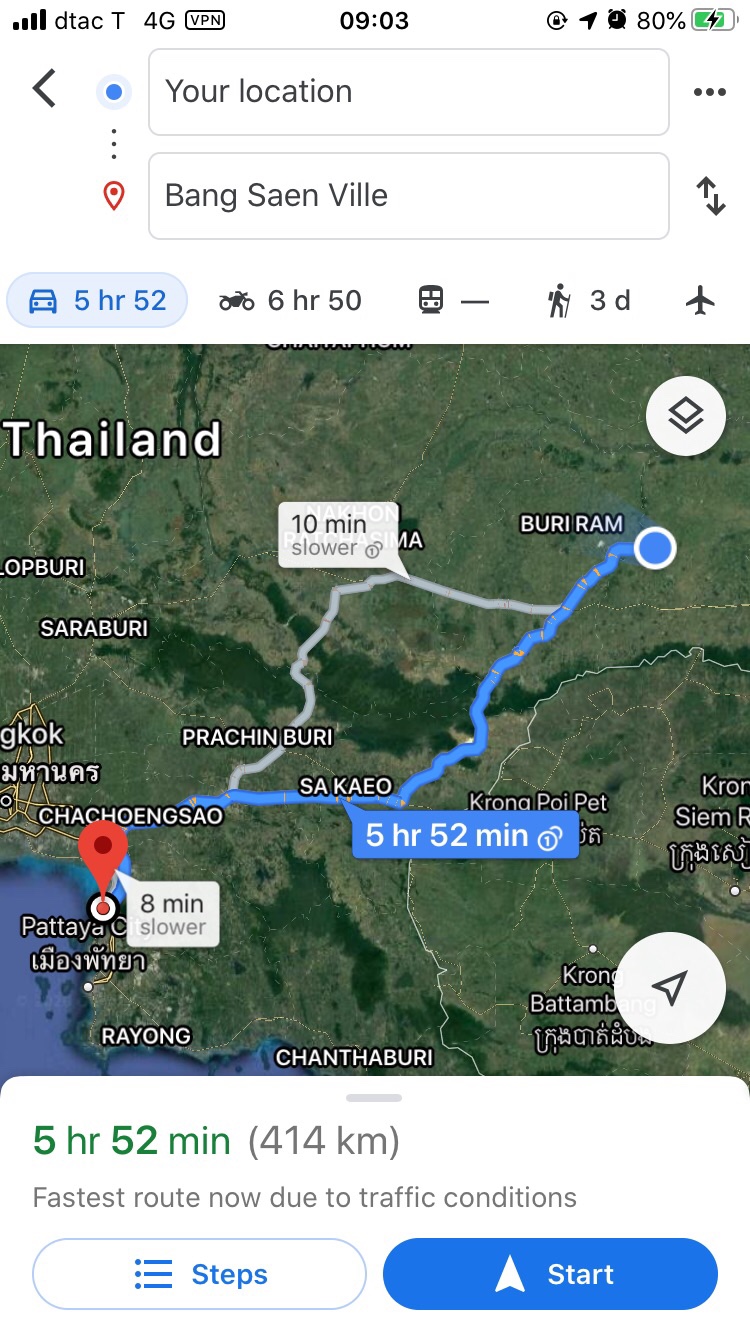 ออกจากสุรินทร์ 09:00 น. ถึงบางแสน 16:00 น. ( ไปเรื่อยๆไม่รีบ )