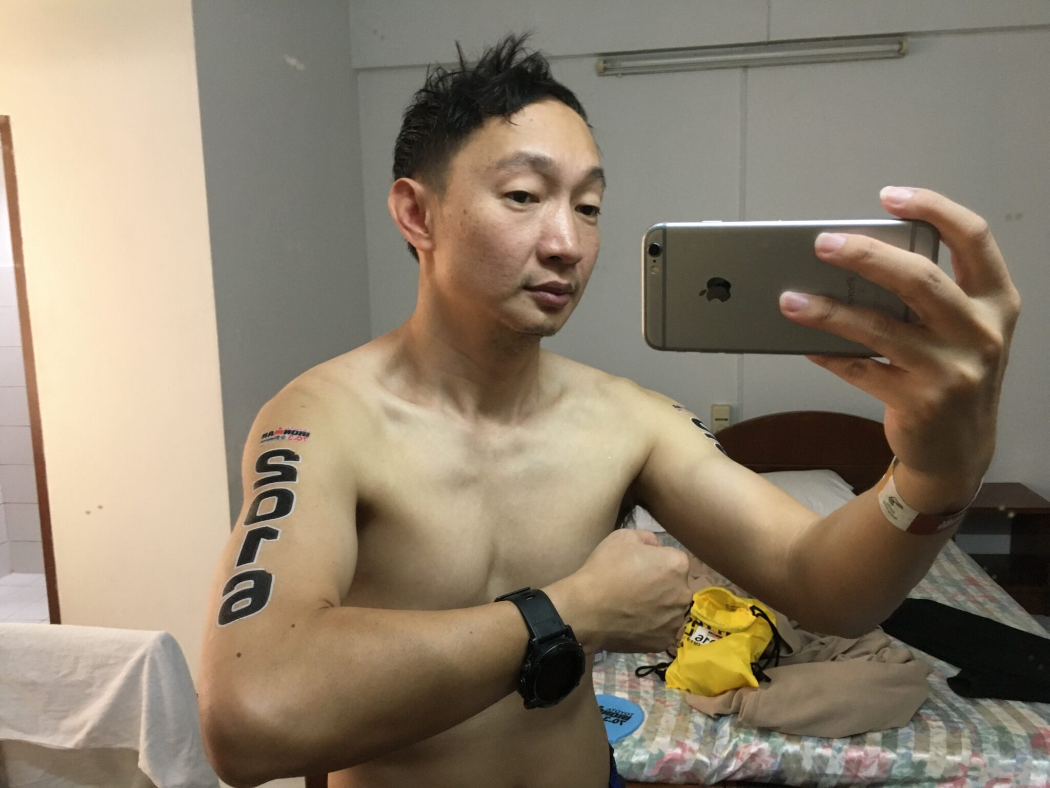 ตอนซ้อมระยะ 1900 ม. ในสระ ใช้เวลาไป 58 นาที ว่ายแบบชิวๆไม่เร่ง