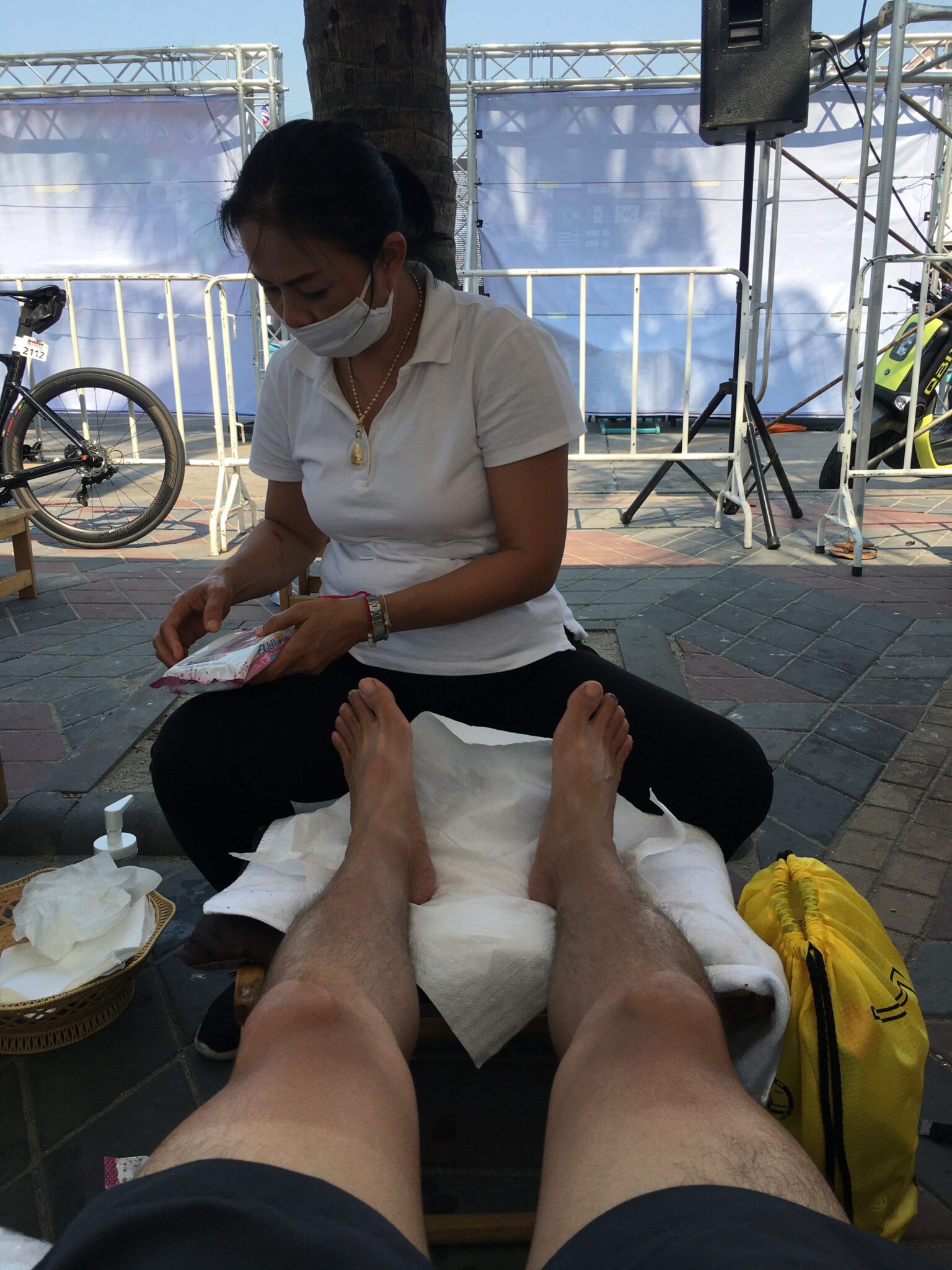 เพื่อนศรีสะเกษปั่นเสร็จ ก็รีบถอด Chip ให้เพื่อนอุบลวิ่ง Half Marathon ต่อ